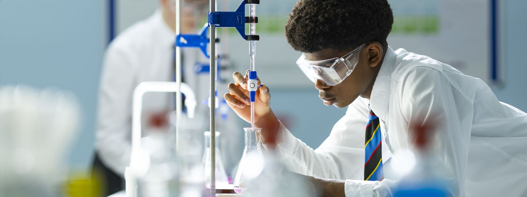 We study the AQA specification at A Level. The course is packed with engaging and interesting practical work which builds on what was learnt at GCSE, to develop pupil’s theoretical and practical abilities in organic, inorganic and physical chemistry. The required practical component allows pupils to go from simply following methods given to eventually designing their own methods and using computer analysis in their discussion and evaluation of their work. Pupils develop as independent learners, reflecting on their work as the course progresses and building valuable transferrable skills. Many go on to use their study of A Level Chemistry in courses such as medicine, biochemistry and chemical engineering.