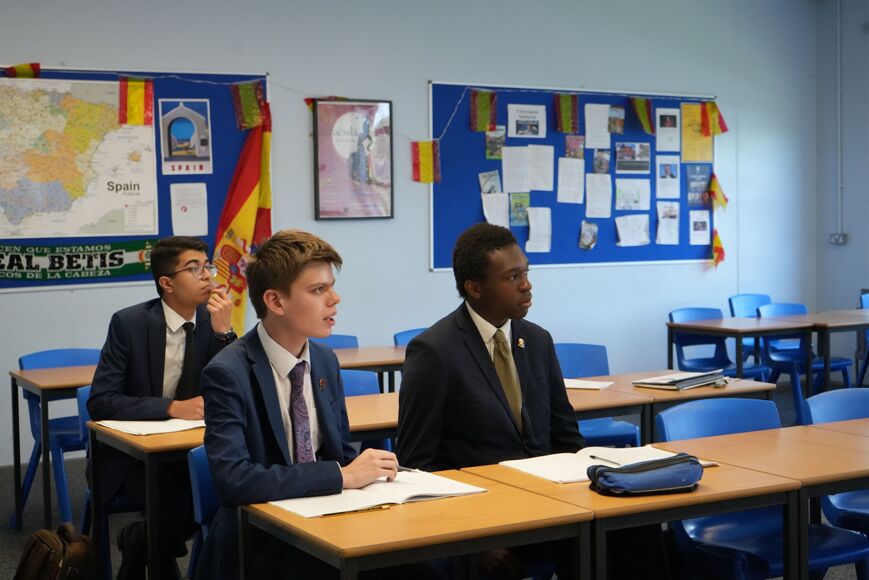 In the First Form (Year 7), all pupils have two 50-minute lessons every week in French and Latin as well one lesson in German. In the Second Form (Year 8), pupils study three languages from a choice of five (Chinese, French, German, Latin and Spanish). First Form pupils are given taster lessons in Spanish and Chinese in the Summer term in order to help them to choose the languages that they will study in the Second Form. The four skills of listening comprehension, speaking, writing and reading comprehension have equal weight, although in the early stages of language learning a certain emphasis is placed on acquiring oral competence. Pupils should gain a practical knowledge of their chosen languages in order to enable them to cope with a variety of situations, for example, making introductions, talking about hobbies, finding the way, dealing with money, shopping and buying snacks.